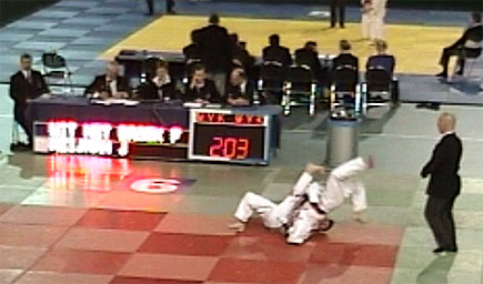 Maar niks hoor, Jim wint zijn derde partij met een schitterende voetveeg. Vierde tegenstander was de sterke Thomas Snijders, maar ook deze moest na een mooie voetveeg het veld ruimen. Jim deed het echt ongelooflijk goed. In de vijfde partij wist Jim zijn tegenstander tot 3 keer toe na een inzet van de ander mooi door te sturen en ook deze partij wist hij zo te winnen (2 yuko’s en een koka). In de zesde partij pakte zijn tegenstander (Floris uit het Broek) na een minuut Jim zijn linkerbeen en duwde hem achteruit. Jim nam een groot risico, offerde zichzelf op zijn rug en schopte Floris over zich heen. Jim had de scheids mee en kreeg het volle punt, ippon!