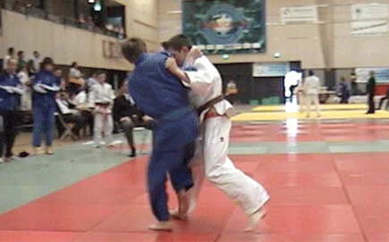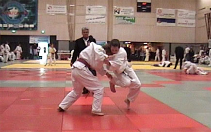 Derde partij was tegen Tom van Ree van Mahorokan (Maassluis). Zelfde scheidsrechter. Bij Jim kwam de rook nog uit zijn oren en hij liet er dan ook geen gras over groeien. Hij scoorde eerst 2 koka’s en nam tot slot een Uchi Mata van Tom over en scoorde hiermee ippon.