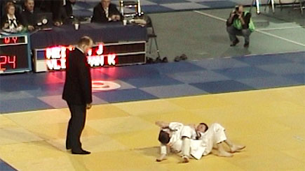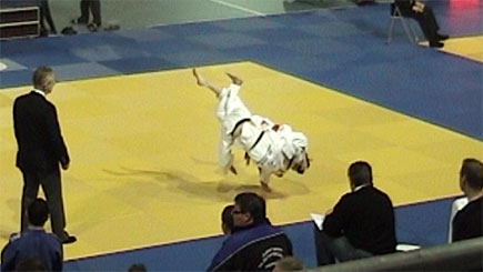 Derde partij ging tegen Bram Lichtenberg (1995) van Budo Sport Arnhem. Na veel actie over en weer wist Jim Bram met een offerworp over zich heen te werpen. Hij kreeg hier wasa-ari voor en dit zou genoeg zijn voor de winst (bovenste foto bericht)