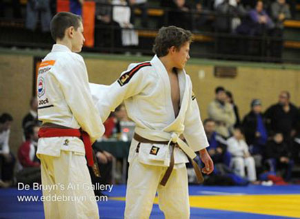 Zesde partij ging tegen Bryan Simons van judoclub Hercules uit Echt. Een ongeluk zit in een klein hoekje. Jim maakte een fout, Bryan profiteert en wint met een ippon.