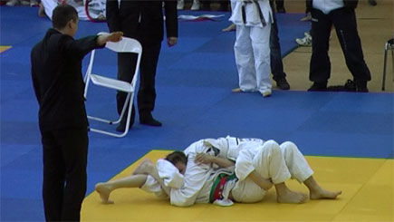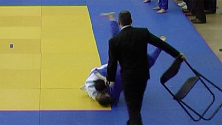 Derde partij tegen de grappige maar niet te onderschatten Boy Vogelzang van Den Edel uit Gouda (7de op Dutch Open 2009). Jim weet binnen 20 seconden een mooie offerworp in te zetten, Boy over zich heen te werpen en zo een ippon te scoren!