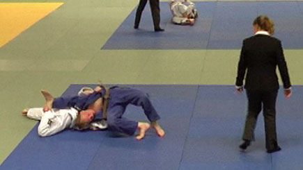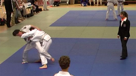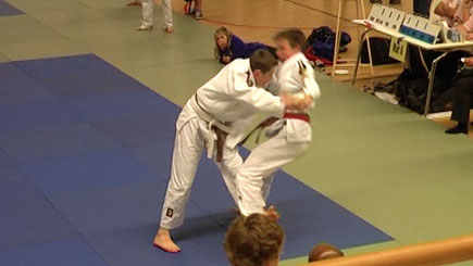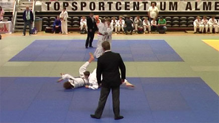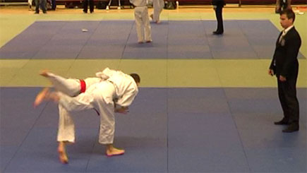 Jim (links) scoort yuko met ko-uchi-gari