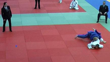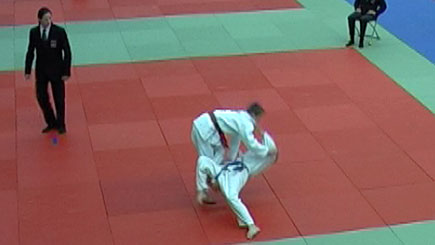 In deze kruisfinales begon hij met een bye, en als hij zodoende zijn volgende partij zou winnen, zou hij minimaal derde worden. Zijn volgende tegenstander was de Belgische Aleksanya Gourgen uit Brasschaat. Een sterke judoka met 1 specialiteit, een lage schouderworp. Na 2 minuten scoorde hij hier een wasa-ari mee en kwam op voorsprong. Even later probeerde hij hem weer en (volgens de tribune) zonder resultaat. Maximaal had de scheidsrechter een koka kunnen geven, maar die is in januari afgeschaft. Wat schetste echter ieders verbazing: hij gaf wederom een wasa-ari en was het hiermee over en uit voor Jim. We waren gewaarschuwd voor wat betreft de scheidsrechters, maar als je het dan aan den lijve ondervindt blijft het toch erg moeilijk te verteren hoor.