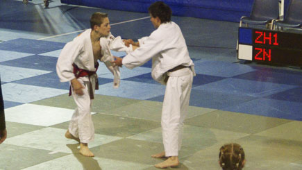 Tweede tegenstander is het team van Limburg. Bij een stand van 6 tegen 1 voor Zuid Holland treft Jim hier de van Armeense afkomst zijnde Gagik Grigorjan van J.C. Hercules uit Pey-Echt. Gagik is de huidige nummer 1 van Nederland en werd ook eerste op het Dutch Open. Hij is een jaar ouder, echt beresterk en staat bekend om zijn tilworpen. Na een kleine 2 minuten is er over en weer veel actie geweest maar zonder resultaat. In de laatste minuut weet Gagik echter het verschil te maken. Hij scoort 2x yuko waarvan de laatste met een tilworp. Maar als team wint Zuid Holland met 9 tegen 5. Het gaat dus nog steeds goed!