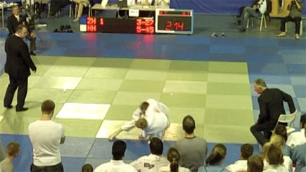 Jim scoort ippon met tani-otoshi
