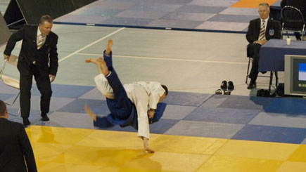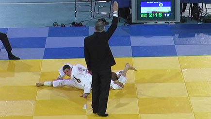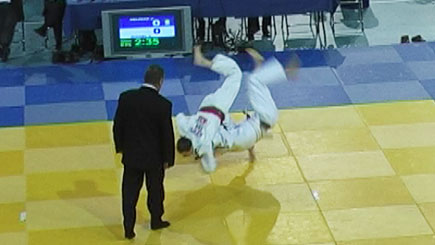 Jim zet toch de uchi-mata in, en scoort ippon