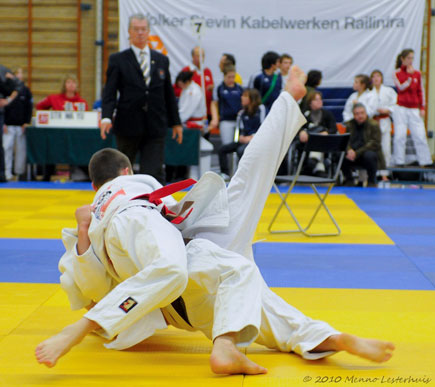 Jim (rode band) maakt tani-otoshi (foto: Menno Lesterhuis)