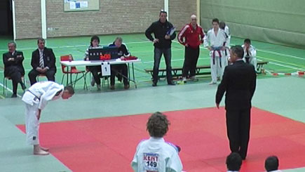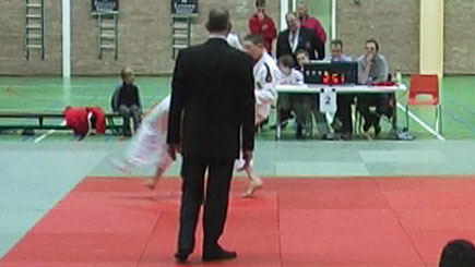 Eerste wedstrijd gaat tegen het combinatie team van judoverenigingen Guan Lin en Yawara uit resp. Den Haag en Rijswijk. Al snel is duidelijk dat het krachtsverschil te groot is. Voor geen van beide teams leuk. Jim tikt een beetje met zijn been om te kijken hoe stevig zijn tegenstander staat en veegt hem onderuit en klaar. De rest wint ook.
