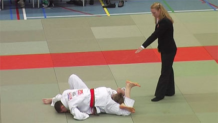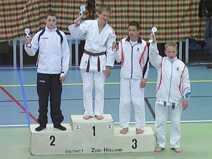 In de laatste partij kon hij zelfs het zilver nog bemachtigen als hij zou winnen van Tommy-Lee de Groot van ‘Westland Kodokan’ uit Monster. En ook Tommy-Lee liep binnen een paar seconden op Jim zijn uchi-mata die goed was voor ippon. Het zilver alsmede zijn NK plaatsing waren dus binnen en zijn duim heeft het gered. Grote klasse. Twee weken rustig aan doen, en dan op naar het NK.